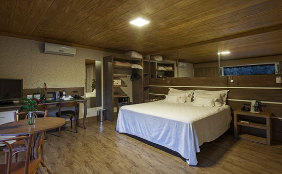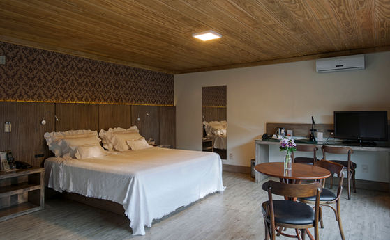 Aconchegante e romântico, este apartamento de 34m² oferece banheira de hidromassagem, amenities de banho da L'Occitane, roupões e chinelos. Ambiente dedicado a casais que optam por exclusividade e requinte.